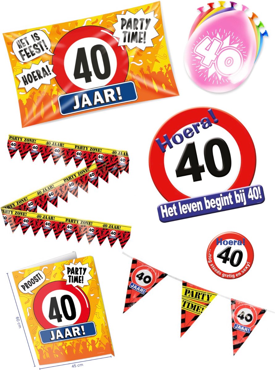 Het feestpakket met 40 jaar versiering bestaat uit vele verschillende leuke versieringen. Alles wat je nodig hebt voor een geslaagde verjaardag zit in dit pakket.