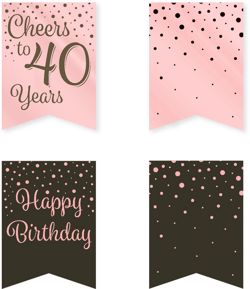 BTH – Slingers – 40 Jaar – Rose-Zwart – Slingers Verjaardag – Vlaggenlijn – 40 Jaar Verjaardag Versiering – Versiering