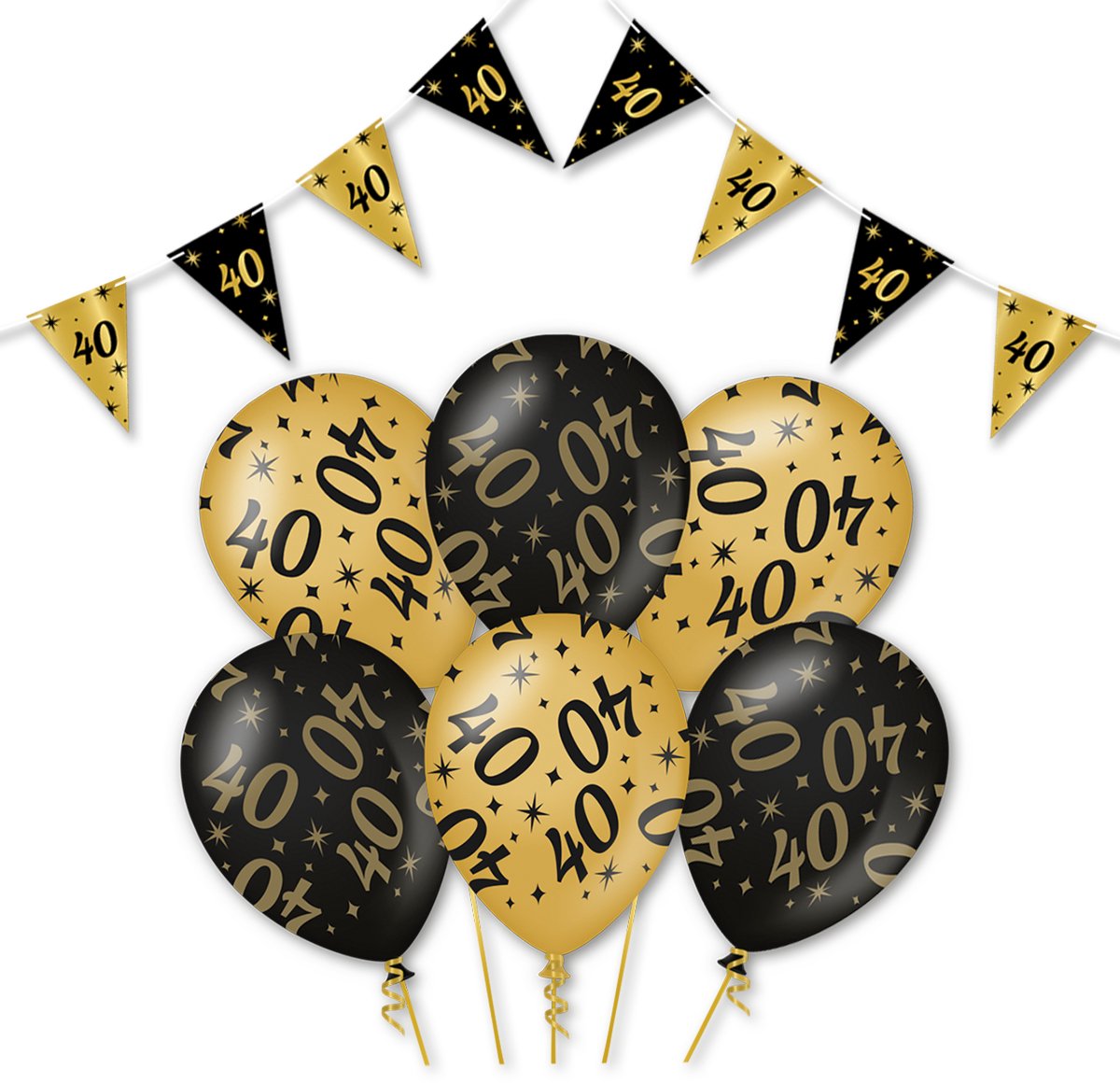 Q2P – 40 Jaar – Slingers – Ballonnen – Zwart & Goud Set – Verjaardag Versiering – Helium Ballon