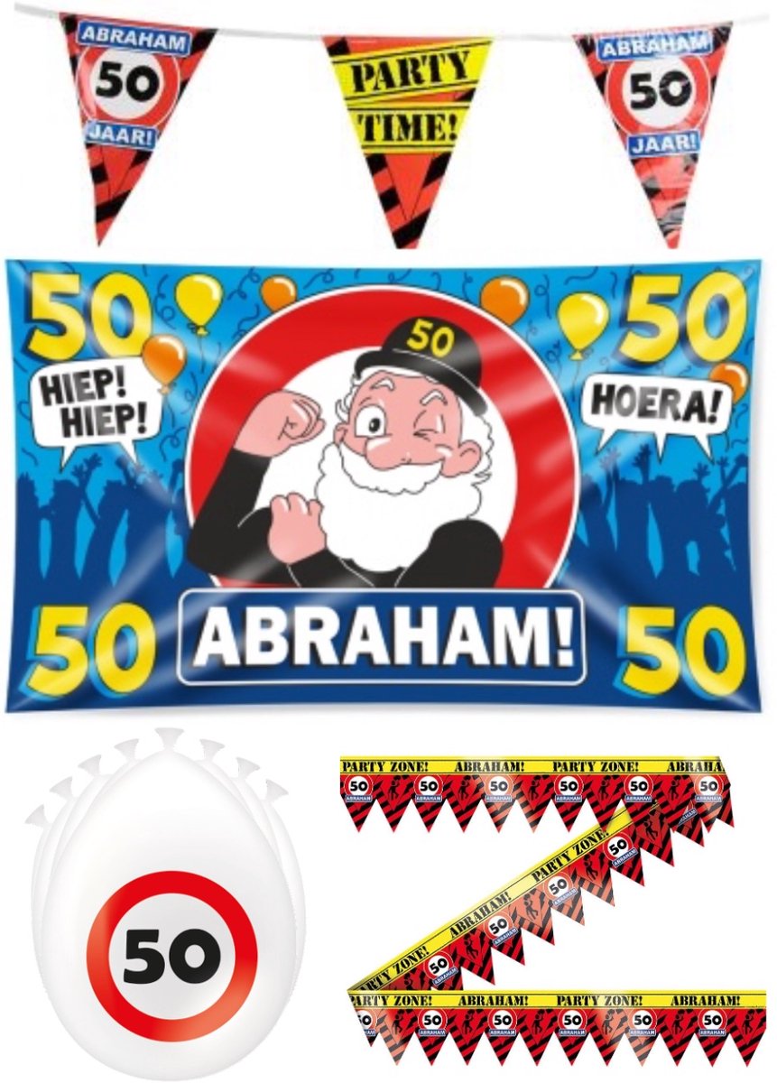 50 jaar Abraham versiering pakket – Versiering Verjaardag – Versiering – Verjaardag – Slingers – Gevelvlag- Ballonnen – Afzetlint
