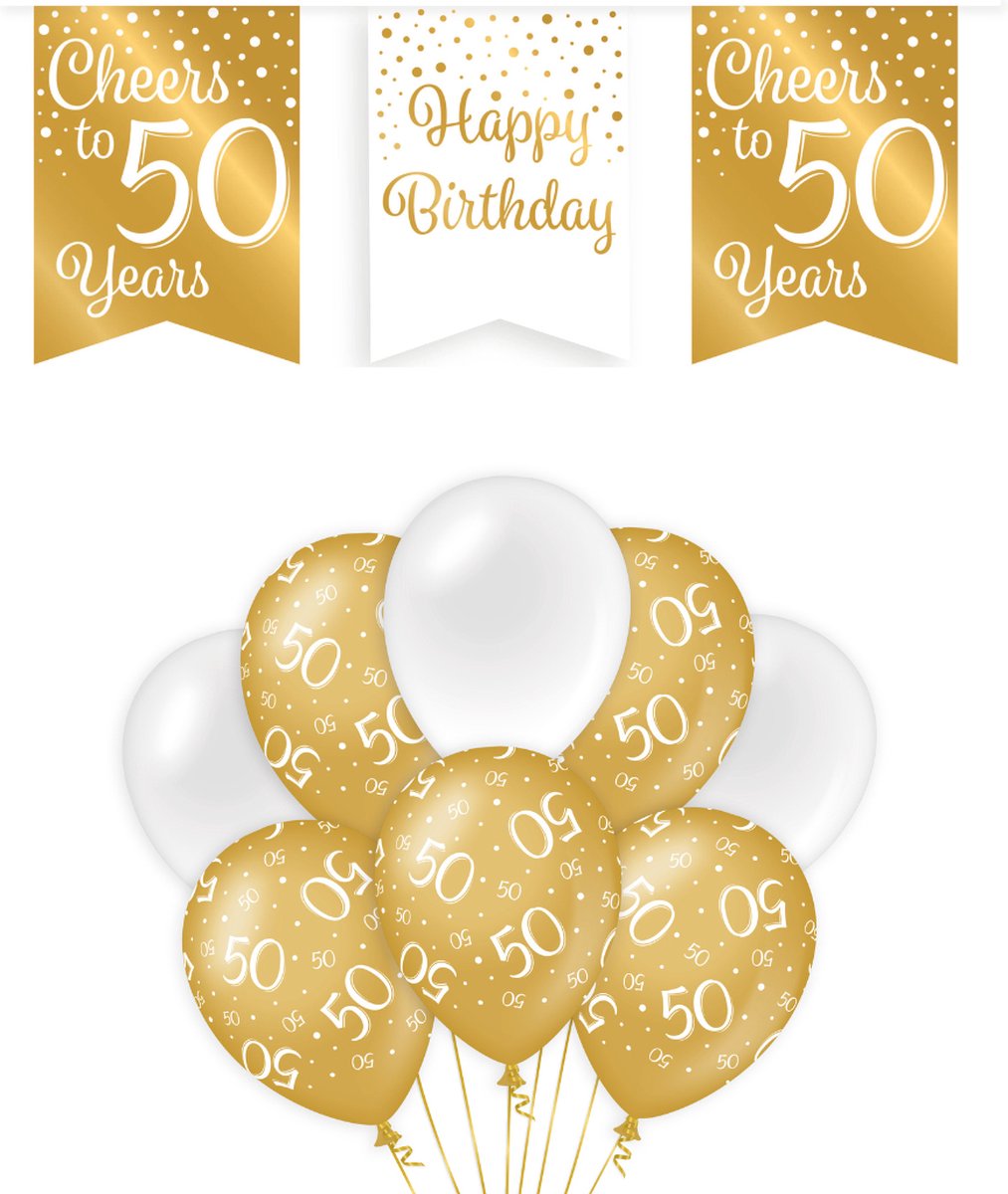 Wordt er binnenkort iemand 50 Jaar? Koop dan dit leuke pakket met een leuke vlaggenlijn en ballonnenset!