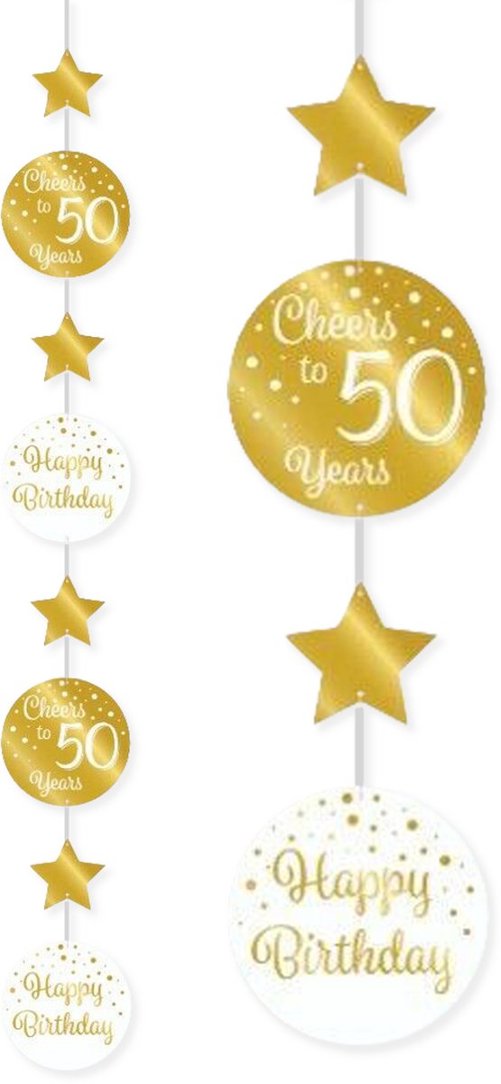 BTH – Hangdecoratie – 50 Jaar – Goud-Wit – Slingers – Slingers Verjaardag – Verjaardag – Decoratie – Versiering – Slinger