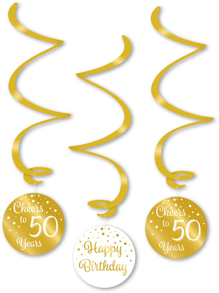 Waarom deze decoratie onmisbaar is: Een 50e verjaardag is een gouden moment – dat vraagt om stijlvolle decoratie! Met deze goud-witte swirls creëer je in een paar tellen een feestelijke sfeer. Combineer met andere Q2Party producten voor een prachtig geheel vol glans.