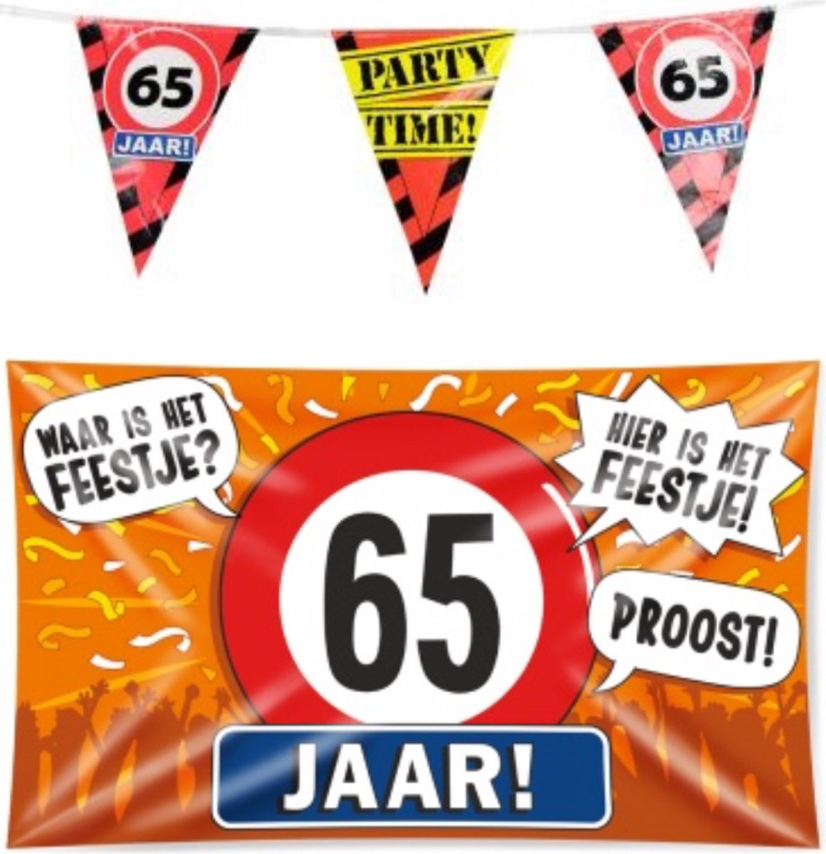65 jaar verjaardag versiering pakket – vlag – gevelvlag – paperdreams