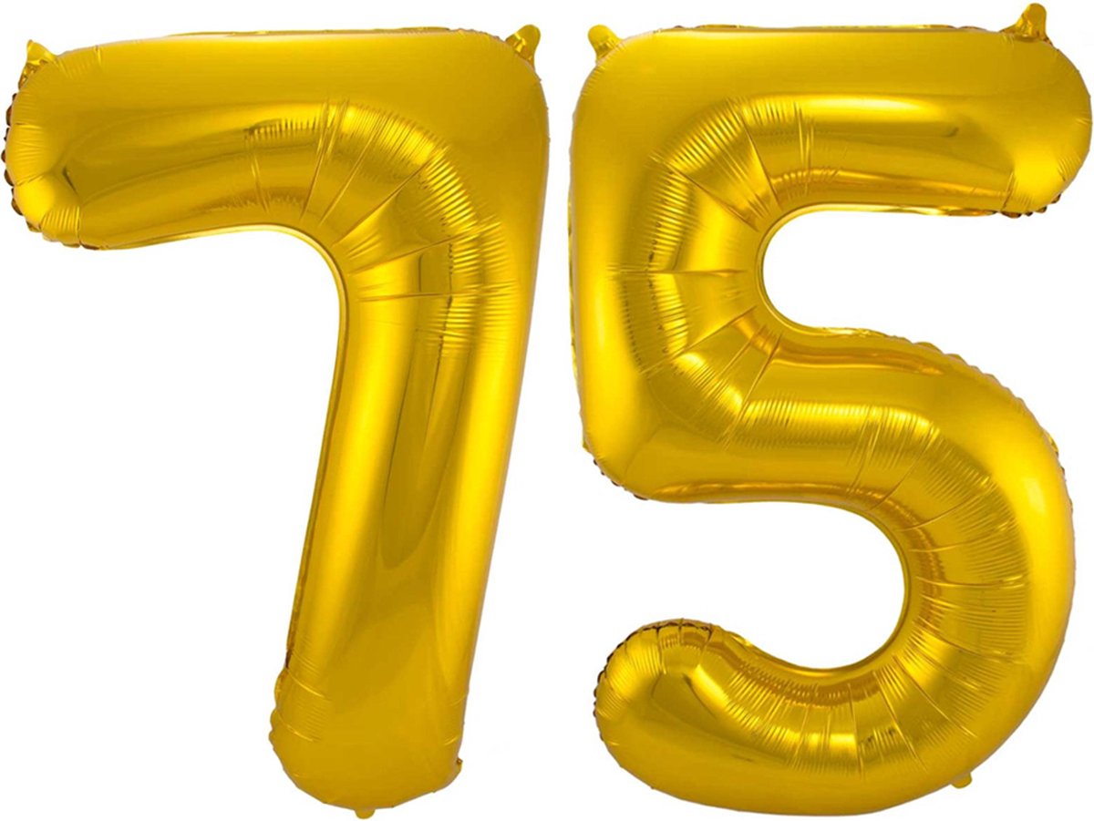 · Gigantische folieballon Cijfer 75, in de kleur goud.