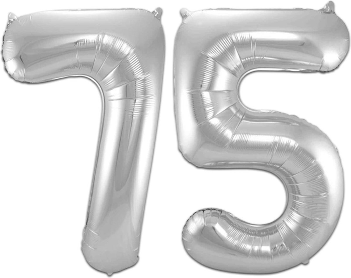 Gigantisch grote Zilveren Cijfer 75 ballon van 86 centimeter, een echte eyecatcher op jouw mooiste verjaardagsfeestje! Prachtige Zilveren folieballon, van goede kwaliteit.